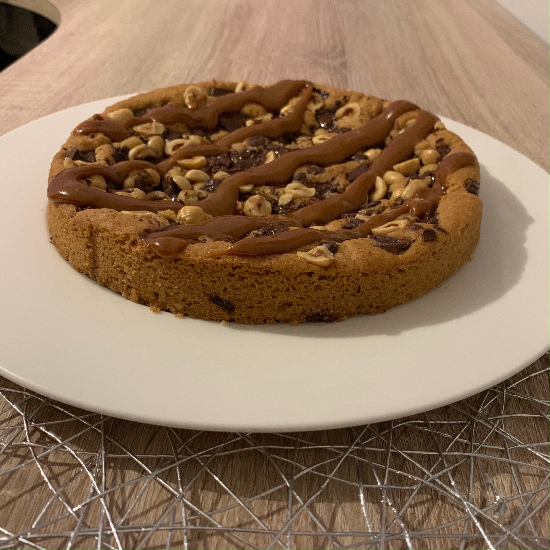 • Enfin, enfournez 15 à 20 minutes (tout dépend de votre four ! Personnellement j'ai mis 20 minutes). Laissez votre cookie tiédir à température ambiante puis décerclez délicatement. Après refroidissement complet, ajoutez le caramel beurre salé puis la fleur de sel.